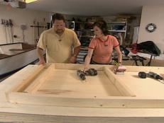 Use a circular saw to cut a 4' x 8' sheet of beadboard to the proper height and width of interior. Use sandpaper or sanding block to remove rough spots of beadboard. Hold each strip of beadboard into place, then secure with a nail gun or screws.